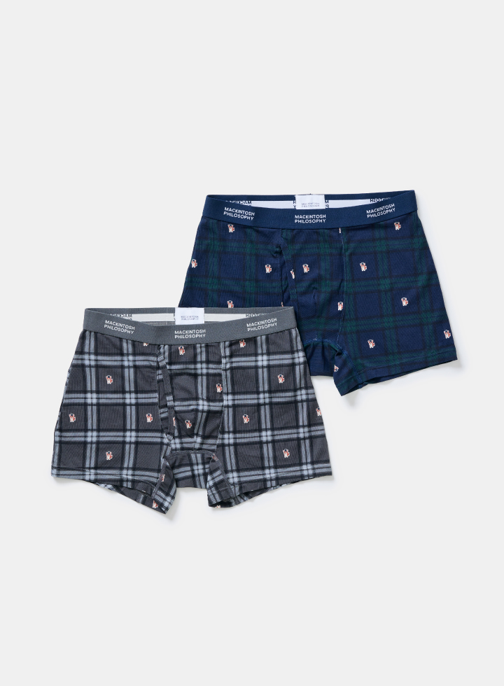 コットンにモダールをブレンドすることで生まれる、独特の優しいすべすべ感が人気の秘密です。ソフトな素材で、肌にストレスを感じさせない快適な着心地を実現しました。チェック柄に人気のコーギーをあしらった、愛らしいデザインのボクサーパンツです。
