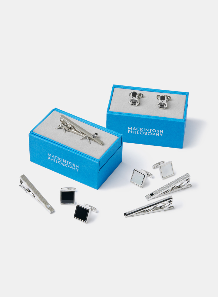 全国有名百貨店の紳士雑貨売り場で展開中のアクセサリーシリーズには、モダンでリュクスなタイバーやカフリンクス、大人気のバッキンガムベアを配したモデルがラインナップされています。オリジナルケース入りで、ギフトにも最適です。